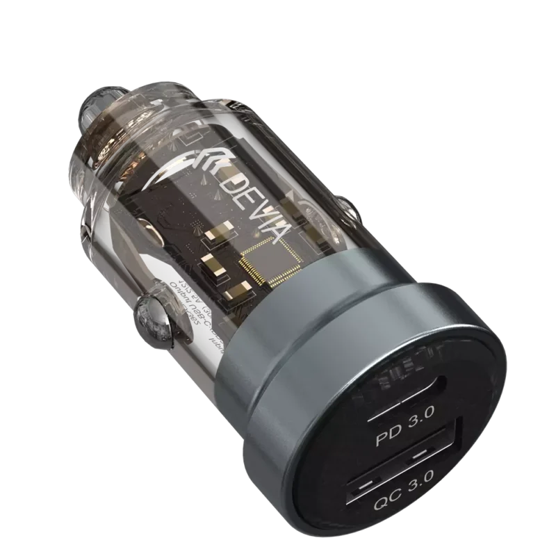 Devia - 20W Mini Power Delivery USB-C & Qualcomm 3.0 USB Port Transparent CyberPunk Car Adapter - Black